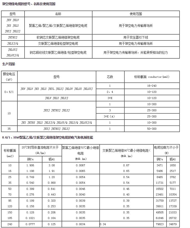 本產(chǎn)品適用于額定電壓35kV及以下的架空電力線路。電纜的機械性能和電性能符合國家標準GBl4049《額定電壓10kV、35kV架空絕緣電纜》和GBl2527《額定電壓1kV及以下架空絕緣電纜》。其中鋼芯鋁絞線交聯(lián)聚乙烯絕緣架空電纜的纜芯結(jié)構參照國標GB/T1179《圓線同心絞架空導線》,電纜的電性能和絕緣的機械物理性能符合國標GBl4049及GBl2527。